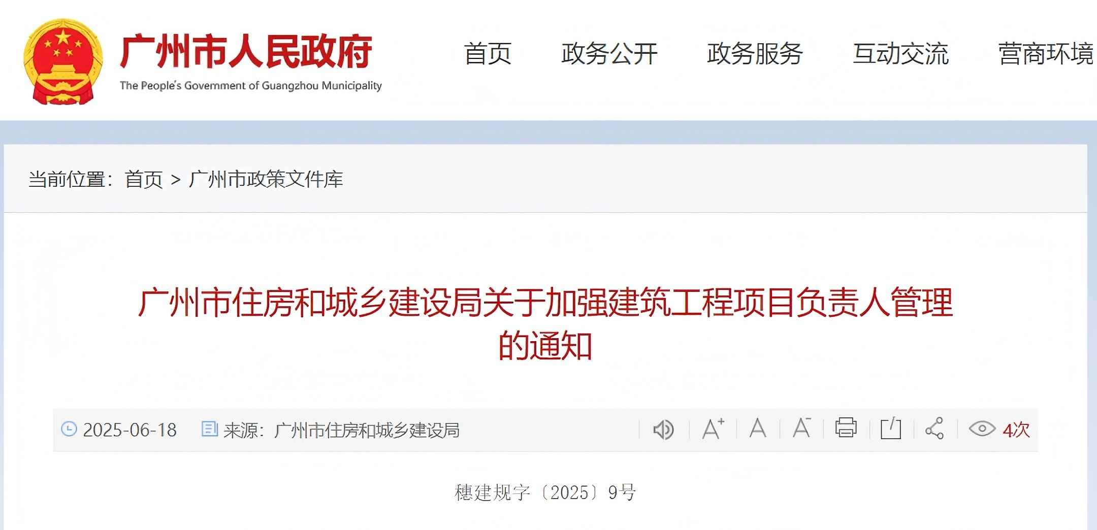 廣州市住房和城鄉(xiāng)建設局關(guān)于加強建筑工程項目負責人管理的通知